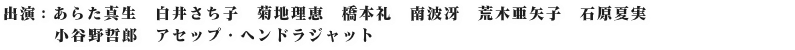 <出演>あらた真生 白井さち子 菊地理恵 橋本礼 南波冴 荒木亜矢子
