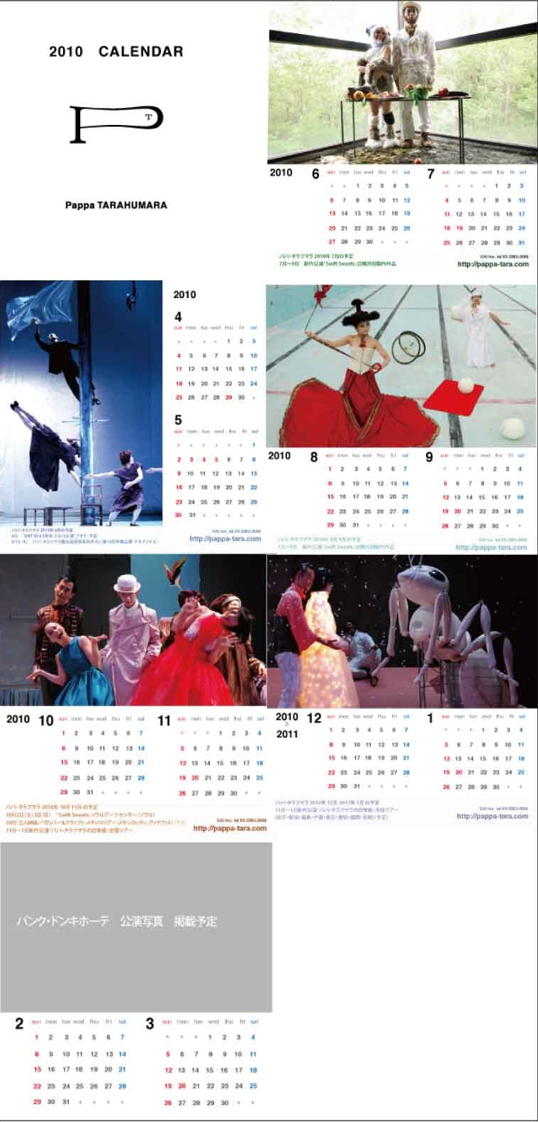 1月中にチケットをお申し込み頂いた方には数量限定でオリジナルカレンダー(117mm×117mm アクリルスタンド付)をプレゼント致します。パパ・タラフマラの舞台写真やパパ・タラフマラ の世界観が楽しめるイメージ写真を季節毎に盛り込んだ貴重なアイテムです。さらに各ページにはパパ・タラフマラの公演予定が書き込まれていて、観劇のチャンスを見逃すことなし。