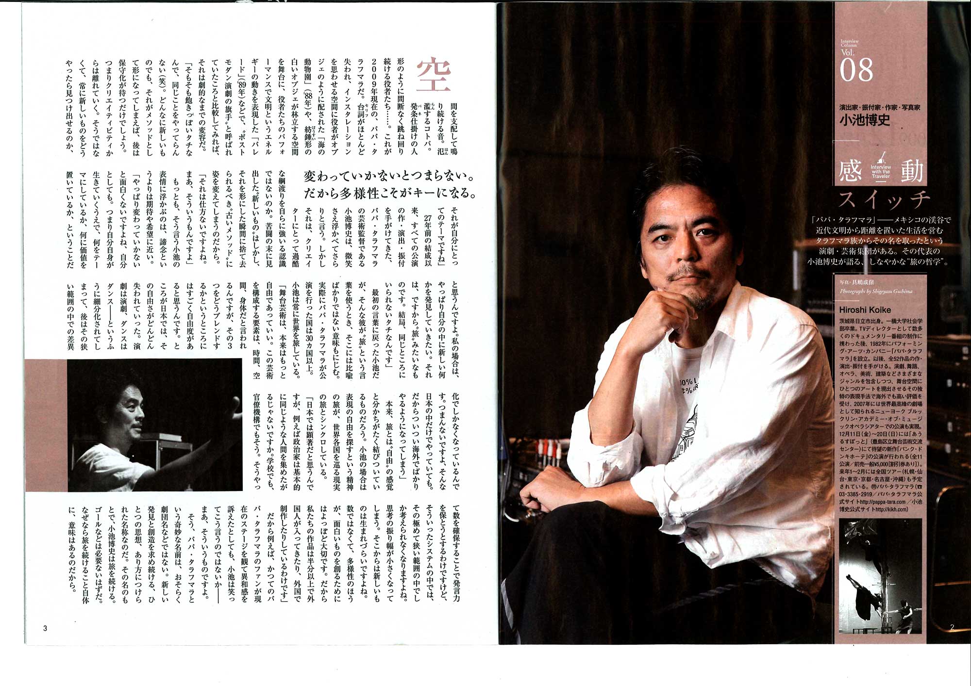 JR東日本「大人の休日倶楽部」(2009年11月25日発行/12月号)にて 演出家・小池博史の巻頭インタビュー掲載されました! |